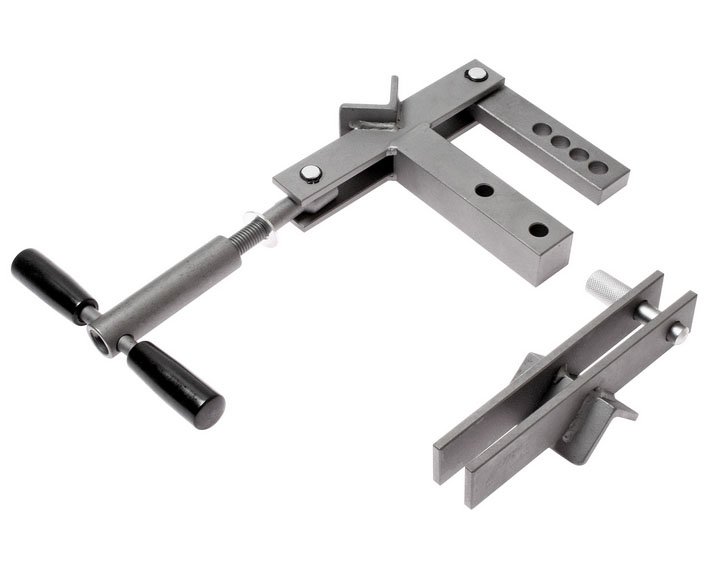 Приспособление для разборки стоек JTC. Имеет 5 отверстий для надежной фиксации на стенде. Используется регулируемый захват для фиксации стоек различных диаметров. Приспособление применяется для надежной фиксации стойки при стяжки пружины. Обеспечивает безопасную и удобную сборку/разборку стоек.