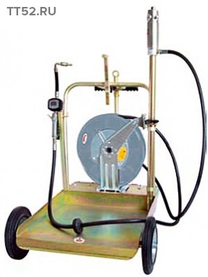 Мобильный комплект Apac 1764 для раздачи масла из бочек на тележке с пневматическим насосом, катушкой на 15 метров, электронным расходомером (счетчиком) и пистолетом. Предназначен для удобной раздачи масел на тележке для бочек 180/220 кг.